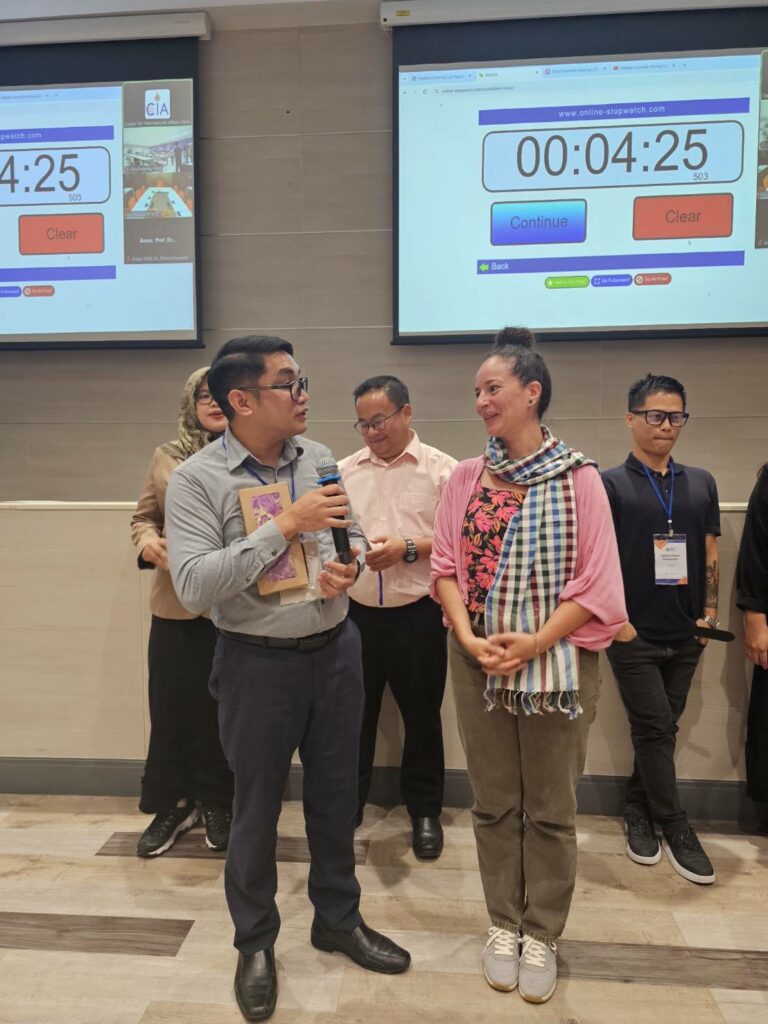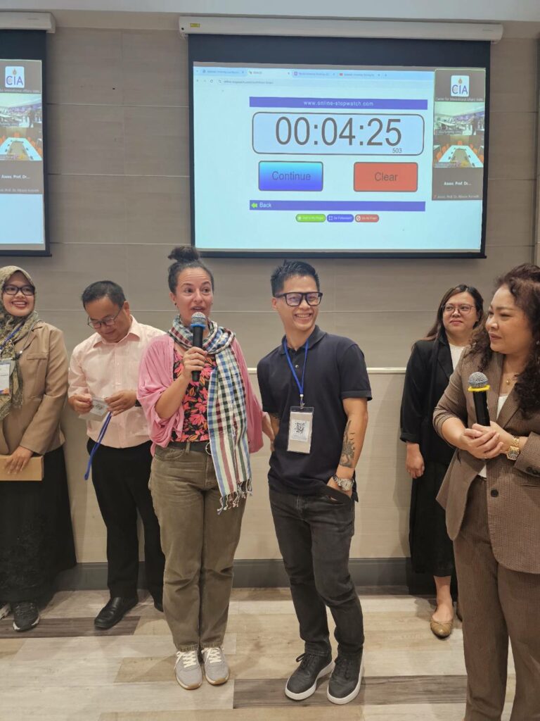 During the event, international faculty members actively participated in promoting the university by sharing the university’s website link on their social media platforms, thereby increasing the institution’s visibility among their international networks. The meeting also celebrated the achievements of five international faculty members who received the International Mobility Fund for Research Collaboration, each receiving a 50,000 baht grant to conduct collaborative research with international scholars and publish high-quality Q1 research papers.