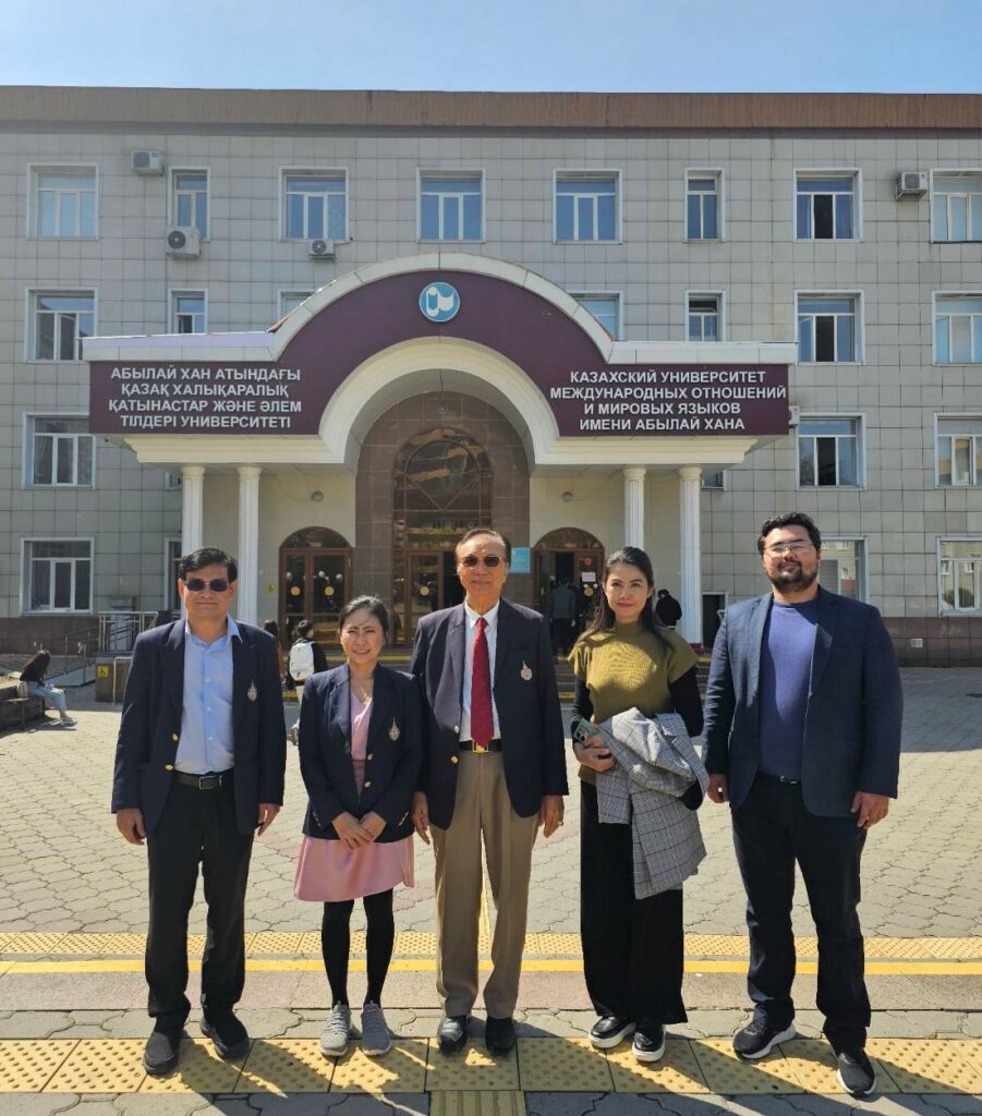 President of WU Professor Dr. Sombat Thamrongthanyawong, together with Dean of the School of Engineering and Technology Assistant Professor Dr. Monthian Setkit, Chairperson of the International Management Graduate Program from the School of Accountancy and Finance Assistant Professor Dr. Pankeawta Lakkanawanit, and Director of the Center for International Affairs Assistant Professor Dr. Patnarin Supakorn visited Kazakh Ablai Khan University of International Relations and World Languages (KAUIR&WL), located in Kazakhstan’s largest city of Almaty, on April 8, 2024.