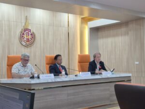 - Research Workshop and Presentation (October 14): A full-day workshop was organized for both parties to present and exchange current research findings. The session was presided over by Vice President, Assoc. Prof. Dr. Surin Maisrikrod, who emphasized the university’s commitment to international cooperation. Following the meeting, the delegation was taken to observe the area around the Thung Tha Lat landfill site to study local waste management practices relevant to pollution and waste disposal research.