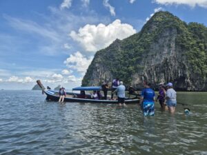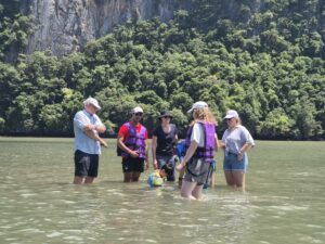 - Fieldwork on Seagrass Conservation (October 15): The delegates traveled to Sikao District, Trang Province, to observe ongoing research on seagrass conservation and rehabilitation. Assoc. Prof. Dr. Mallika Srisutasanasinee and Assoc. Prof. Dr. Krisanadej Srisutasanasinee led the field visit. They were joined by Mr. Banjong, Head of the Bo Hin Community and Seagrass Conservation Group, who provided valuable insights into local conservation efforts, nursery techniques, and the challenges leading to seagrass mortality in Trang Province.